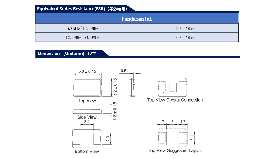 Surface Mount Passive Crystal Oscillator 50S 8.0~54.0MHz 8~20PF ±20PPM