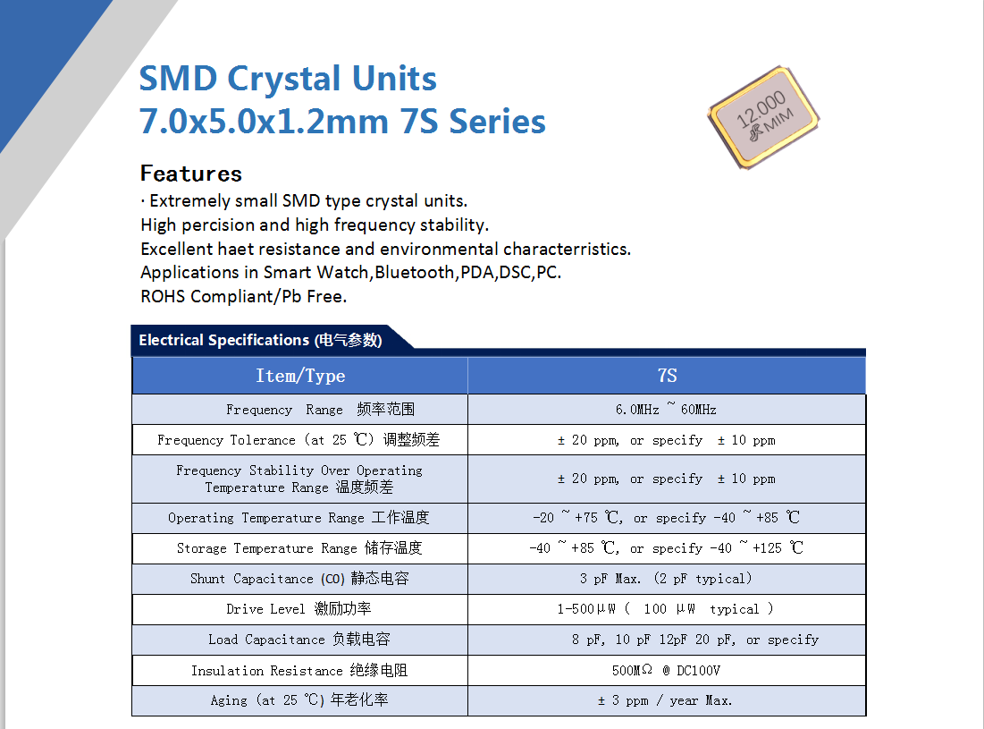 passive crystal oscillator chip 70S 6.0~60.0MHz 8~20PF ±20PPM