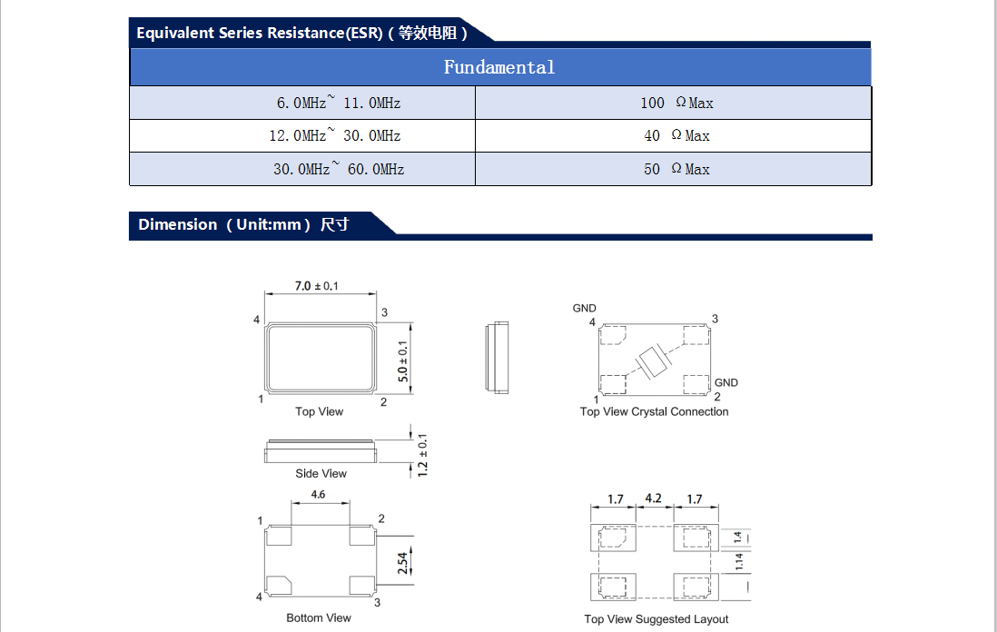 passive crystal oscillator chip 70S 6.0~60.0MHz 8~20PF ±20PPM